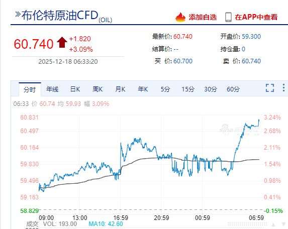 据央视新闻,当地时间12月17日,在美国总统特朗普下令全面封锁所有进出委内瑞拉的受制裁油轮后,市场对地缘政治风险担忧升温,推动油价走高。国际油价一度涨超3%。